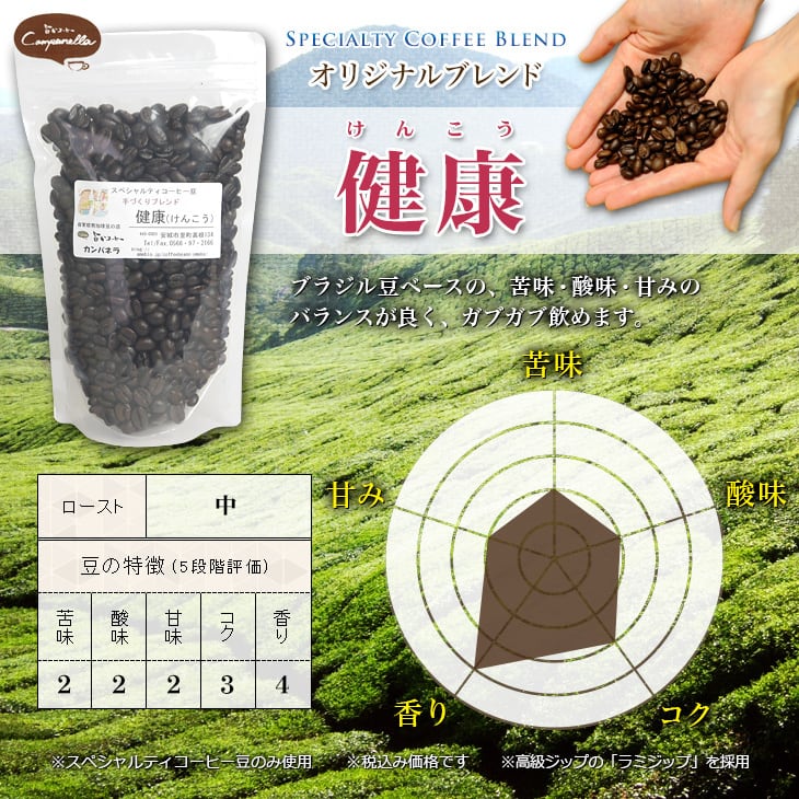 『健康』はその『ブラジル』を中心にさらに飲みやすいようにこだわってブレンドしました。