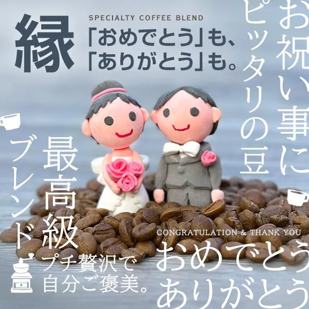 『縁』は「慶びのコーヒー」をコンセプトにお祝い時などの縁起物として販売しております。