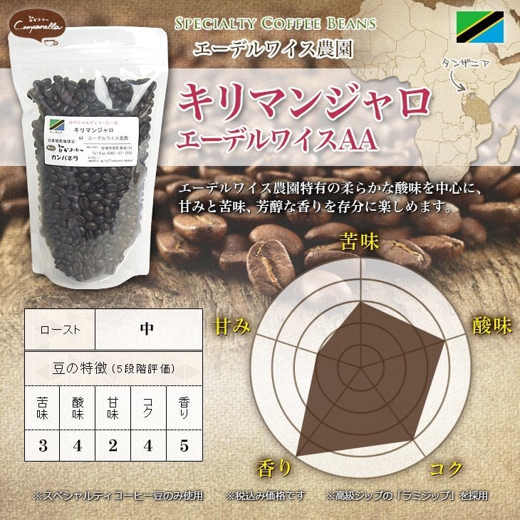 キリマンジャロといえば強い酸味が持ち味ですが、エーデルワイスは少し違います。